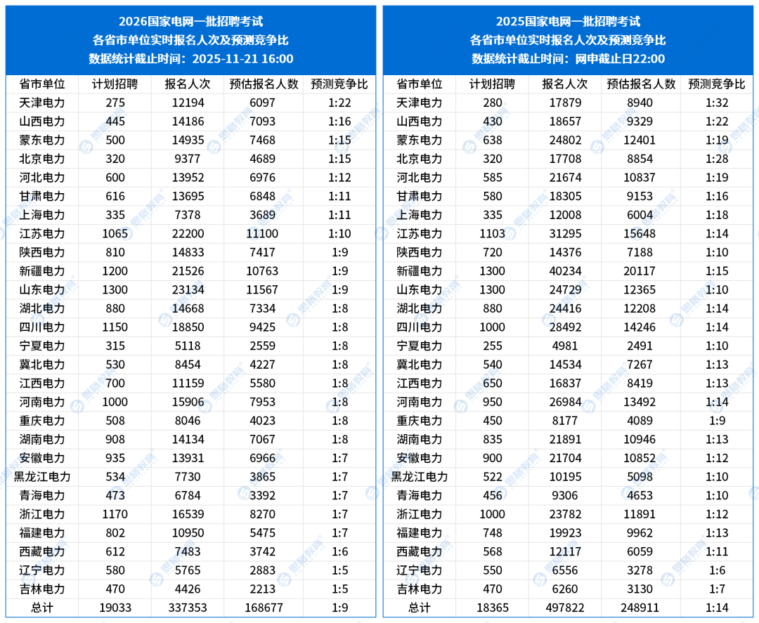 今天是2026國(guó)家電網(wǎng)一批招聘考試網(wǎng)申的第8天,小思幫大家整理了截至今日16:00各省市單位的報(bào)名情況,分享給大家~